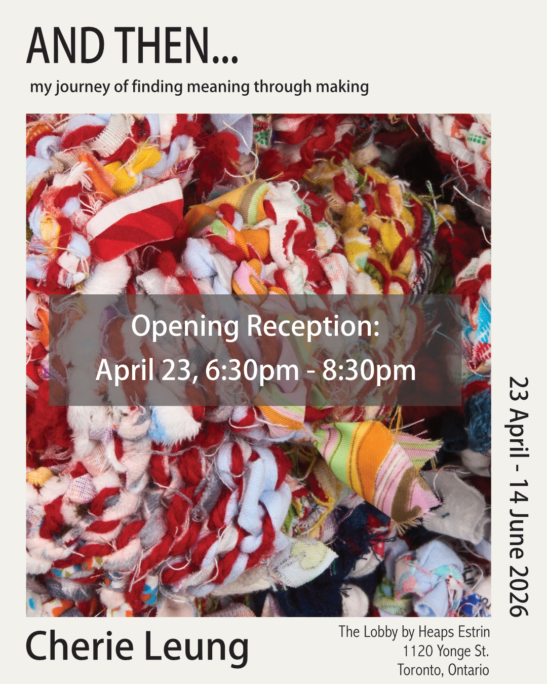 The Lobby by Heaps Estrin is thrilled to present the first solo show of textile artist Cherie Leung – "AND THEN…my journey of finding meaning through making."